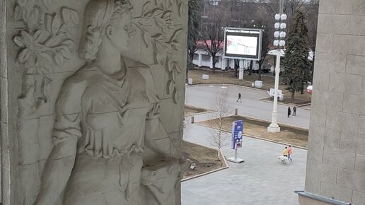 Барельефы арки главного входа ВДНХ крупным планом.