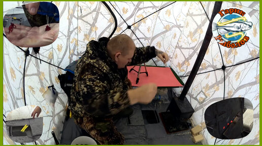 Зимняя рыбалка с ночёвкой на реке ,палатка и печка делают комфортным прибывание на льду.