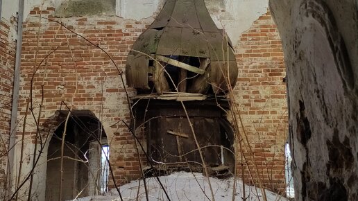 Огромный купол рухнувший во внутрь церкви.