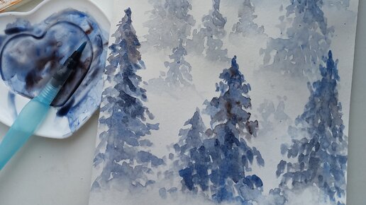 Рисуем ели тумане.