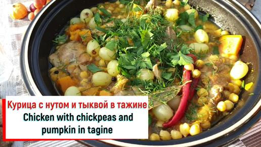 Курица с нутом и тыквой в тажине. Chicken with chickpeas and pumpkin in tagine.