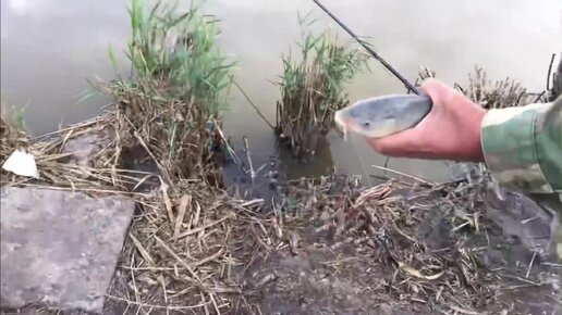 Карп на поплавок. Рыбалка на пруду.