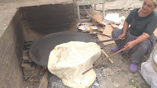 Как в Турции женщины пекут хлеб.