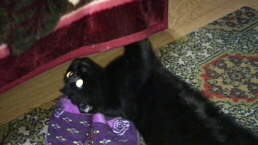 Кот Вася Черный лежит вверх пузом и мяукает, такой красавчик