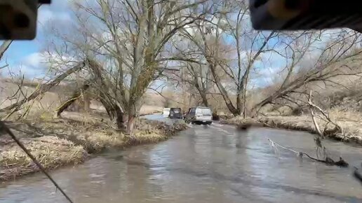 То ли машина а то ли корабль. Едем прямо по руслу реки