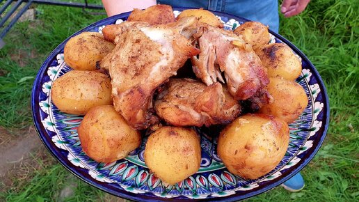 Казан кебаб из курицы в казане на костре. Казан кабоб по-узбекски. Вкусный рецепт.