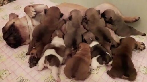 Щенки завтракают а счастливая мама балдеет