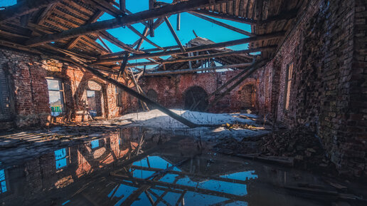 Зашли в разрушенное кирпичное здание. А что здесь было раньше? Сразу и не догадаешься!