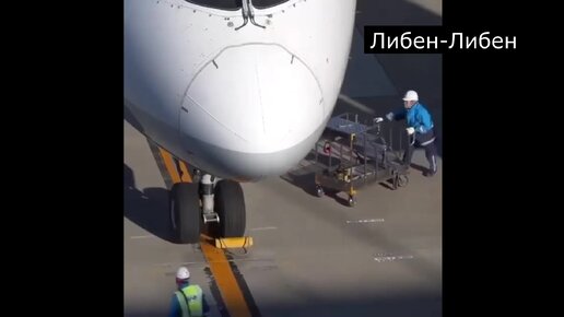 Как выглядит приёмка и буксировка самолёта с перрона. Разные ракурсы и работа тягача.