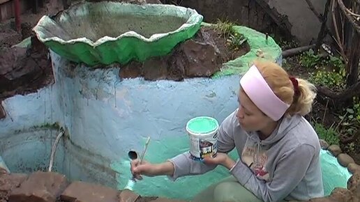 Фонтан во дворе, весенние работы по обслуживанию фонтана