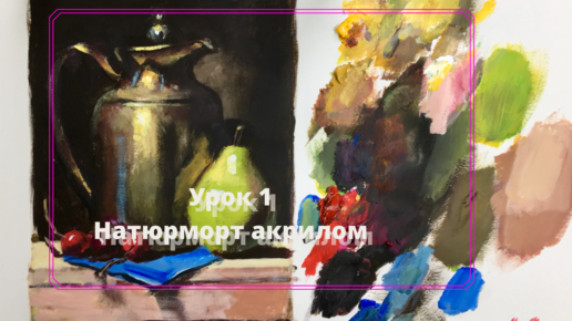 Сделал видео урок по живописи, натюрморт с чайником и грушей