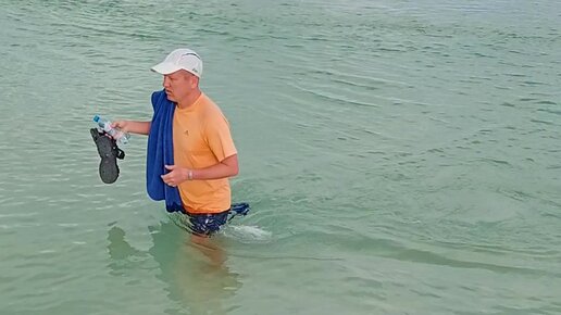 Удачная попытка перейти протоку на о. Кайо-Коко (Куба). Туристы только полотенце и одежду замочили, но перешли.