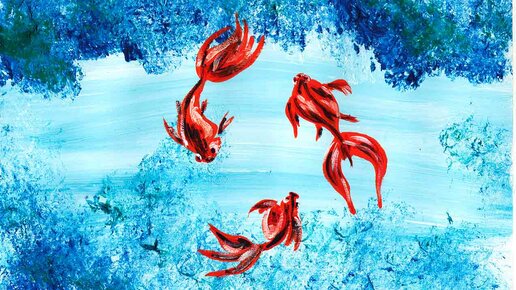 Как нарисовать золотую рыбку. Рисуем танец рыбок. Рисуем море гуашью. Рисуем морских обитателей.