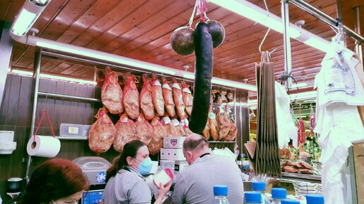 Шутят работники мясного отдела на рынке Валенсии