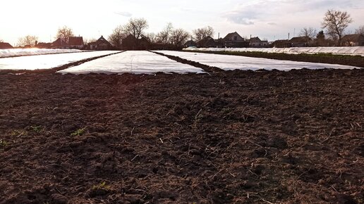 Высадили картофель. Накрыли спанбондом