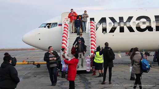 Как в Ижевске встречали первый Боинг авиакомпании "Ижавиа": водной аркой, песнями и перепечами