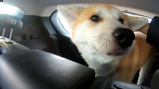 Собака АКИТА ИНУ в машине /Хатико ждет в машине / Встретил друга
