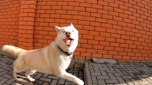 Собака Сибирский Хаски Бегает во дворе дома