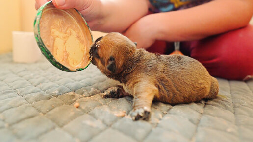 Щенки первый раз в жизни пробуют настоящую еду, а не молоко матери. Понравится ли им мясо?