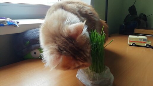 Мейн кун Коржик и поедание травы
