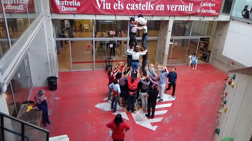Башня из людей. Увидели, как тренируются испанские кастельеры во дворике в Барселоне