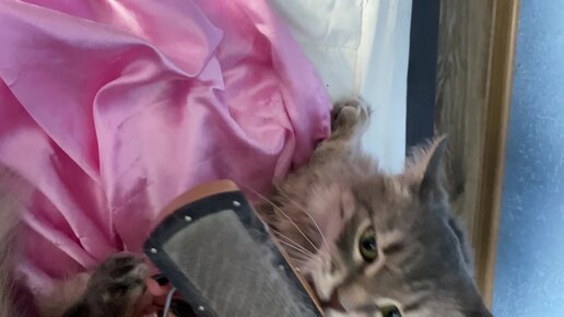 Кота расчесывают. Противоречивые эмоции)))