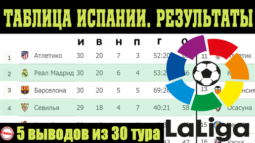 Подводим итоги 30 тура Чемпионат Испании (Ла Лига). Результаты, таблица и расписание.