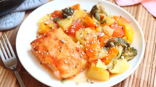 🐟 Филе палтуса с овощами в духовке — видео рецепт