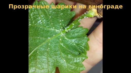 Прозрачные шарики-капельки на виноградных листьях и стебле