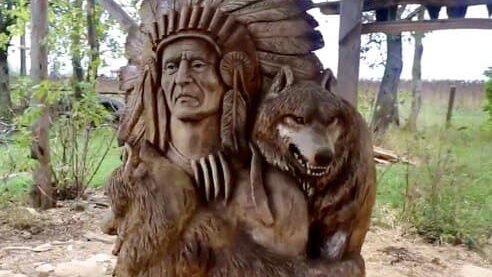 Резьба по дереву бензопилой, 5 часов работы за 6 минут!