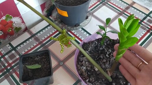 Размножение долларового дерева листом и веточкой.