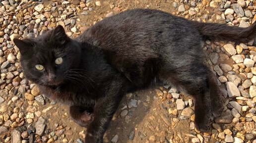 Очень игривая чёрная бездомная кошечка требует человеческого внимания.