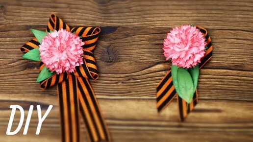 Брошь на 9 мая своими руками / Георгиевская лента / Простая гвоздика из фоамирана