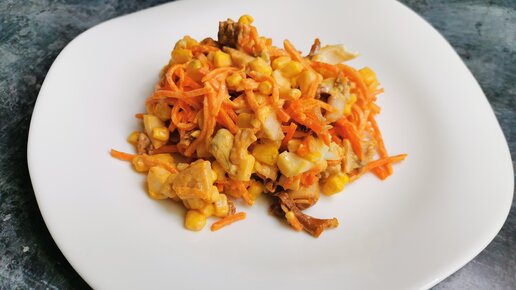 Хорошо всем известный салат с моим дополнением. Всего 4 ингредиента и майонез.