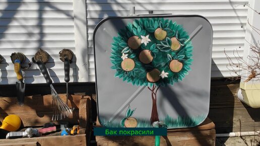 Как из невзрачного бака сделать шедевр. Жена расписала емкость для воды.
