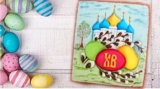 Пасхальная открытка. МК. Заливка глазурью, тонировка и прорисовка кистью.