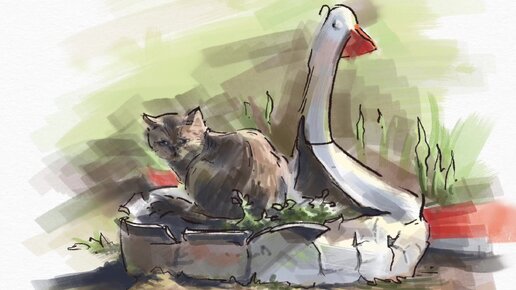 Процесс рисования на iPad “Котейка на клумбе»