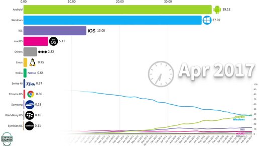 Самые популярные операционные Системы 2009 - 2021 (Все устройства