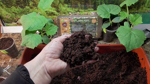 Посев огурцов в кокосовый брикет.