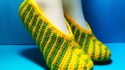 #517 ТАПОЧКИ СПИЦАМИ, СВЯЗАННЫЕ ОТ НОСИКА С БЕСШОВНОЙ ПОДОШВОЙ . МАСТЕР КЛАСС.