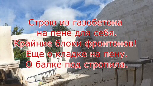 Из газобетона на пене для себя. Фронтоны! Еще о кладке на пену. Стальная коньковая балка под стропила.