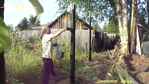 Крашу мажу я столбы. Ломаю старый забор. Строю новый забор. День 4. Часть 5.