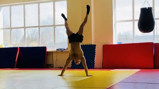 Жимовая тренировка. Жим лёжа 122 кг. Брусья с доп весом 60 кг. Отжимания в стойке. Ходьба на руках. Стойка на гирях.