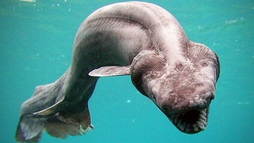 Редкие кадры жувущей в наши дни Акулы-Динозавра! 300 острейших зубов! Плащеносная акула!