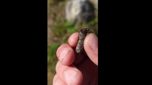 Личинка ручейника в своем "коконе" из песчинок, скрепленных шелком