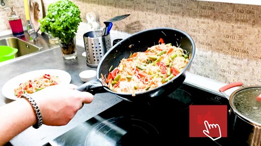 Фунчоза с курицей и овощами в воке. Вкусно и быстро!