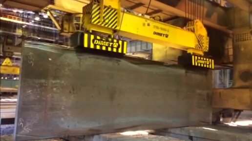 Электромагнитная траверса для мягкого кантования слябов. "Живая" съемка работы