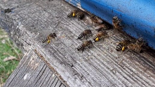 Пчёлы носят первую пыльцу на лапках