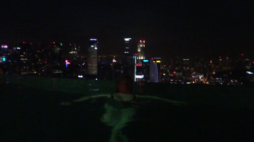 Marina Bay Sands - самый дорогой отель Сингапура. Вид с бассейна ночью.