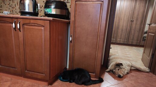 День за днем, так и живём.)) Смешнее смотреть со звуком.) Наша стая. Три кота и большой пёс.